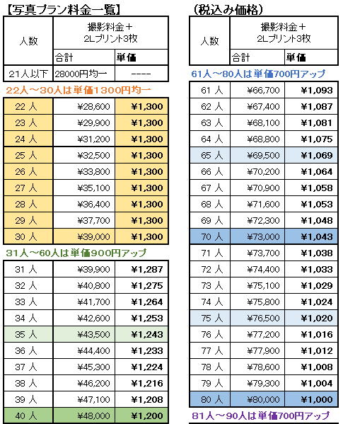 集合写真はお顔がなるべく大きくなる様、縦127mm x横192mmの2Lワイドサイズにプリントします
