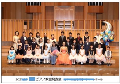 最下部に白地に黒文字で、日にち、発表会名、開催ホールを入れております。